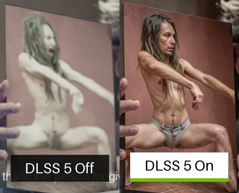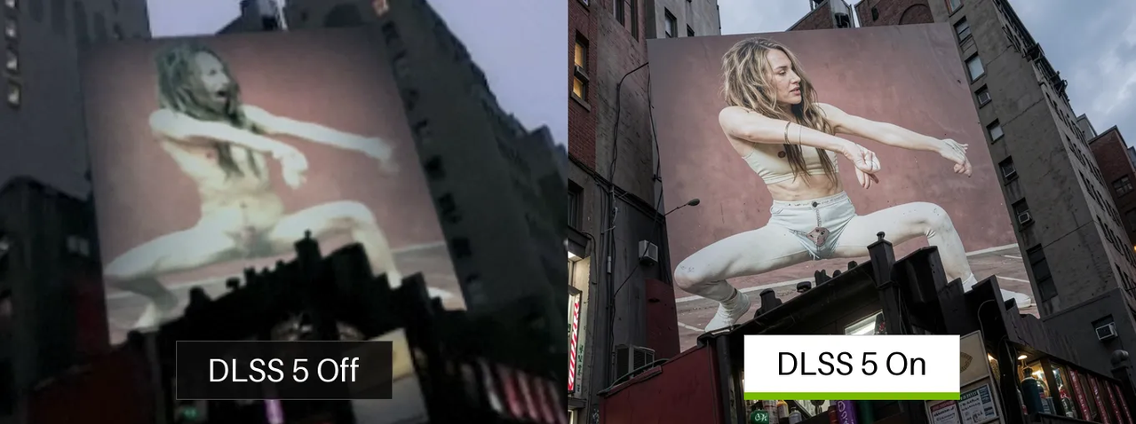 I thought DLSS was about upscaling, not AI-slopping games..? I'm not averse to improving in-game graphics but totally changing the way characters look, slopping an AI-filter from an iPhone or something on the game which is instantly recognizable, having that plastic uncanny-valley effect? No thanks. I really hope it's optional and that better quality upscaling is still the main focus.