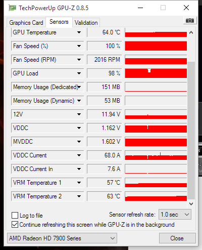 Sensor tab during 100% stress test: