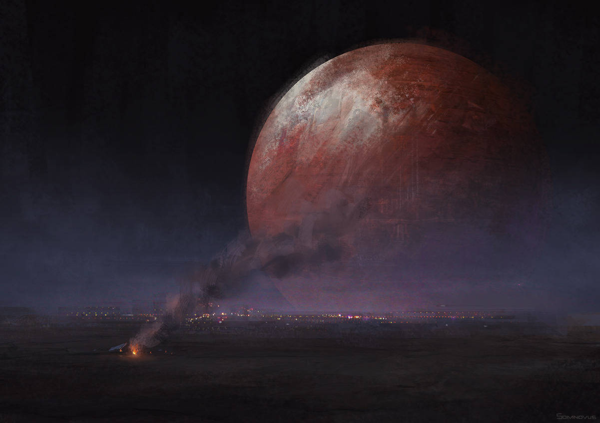 HUGE megalithic structures, soaring towers, blazing stars, futuristic landscapes, gigantic machinery, uncharted alien worlds... Dark, gritty, unsettling.